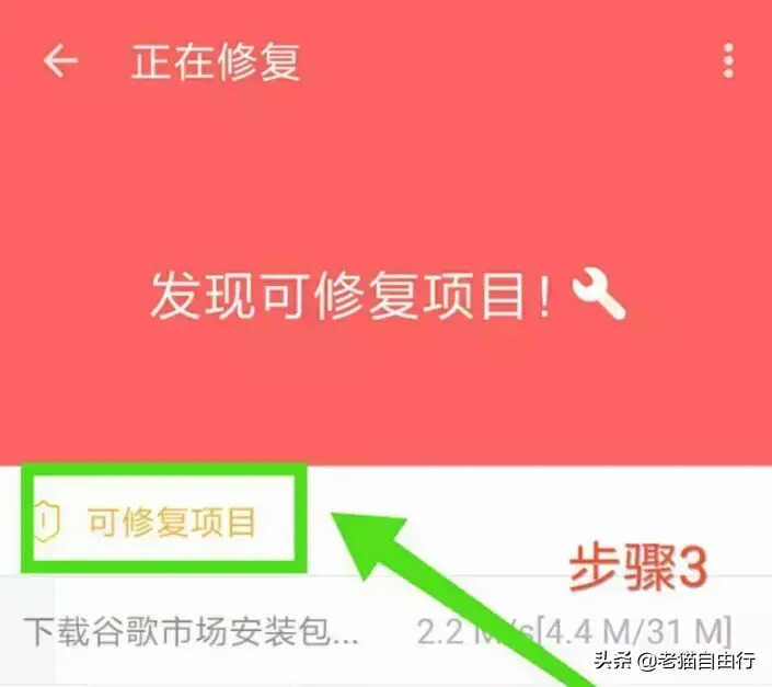 打开谷歌安装器后点击扫描检查,系统会出现一个修复项目,点击修复后等待约5分钟(根据网络速度情况)。