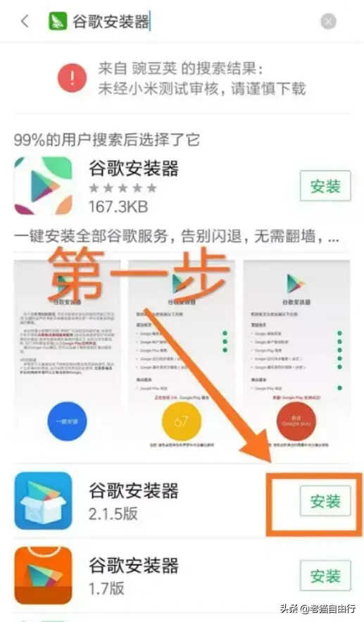 首先在手机自带的应用商店搜索“谷歌安装器”。然后选择2.1.5版本进行安装。