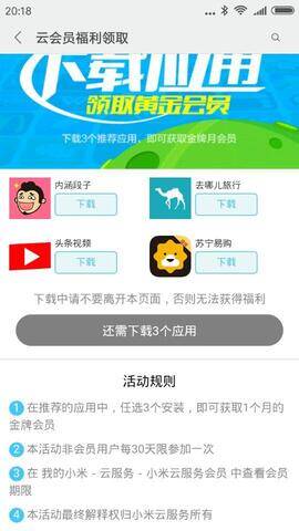 1.打开小米云服务界面,在中间找到下图方框里的会员免费领按钮