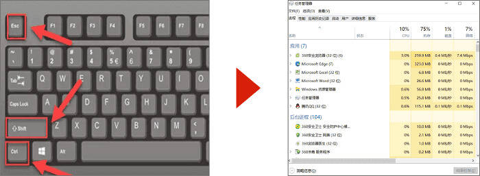 1. 使用组合快捷键Ctrl+Shift+Esc启动任务管理器。