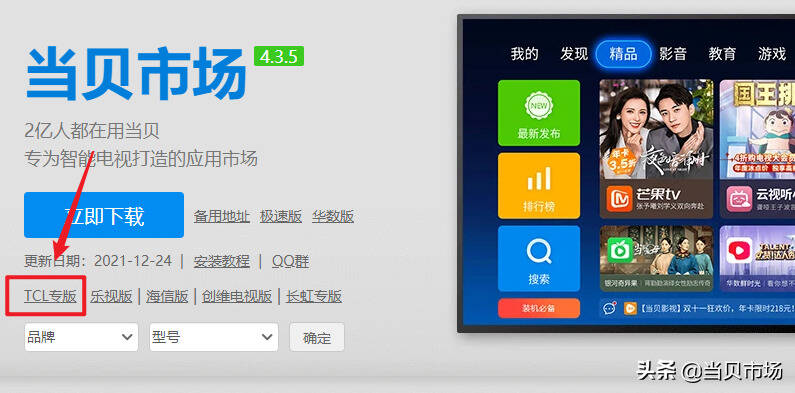 1、下载当贝市场TCL专版
