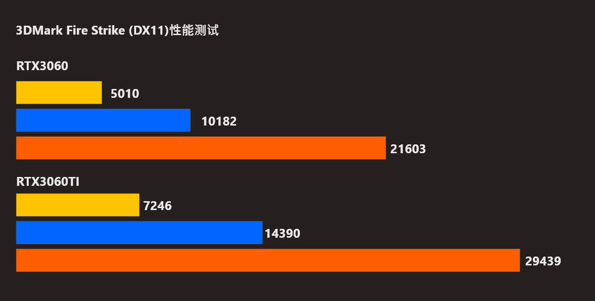 Fire Strike模式下:GTX3060相当于RTX3060TI的73.3%。