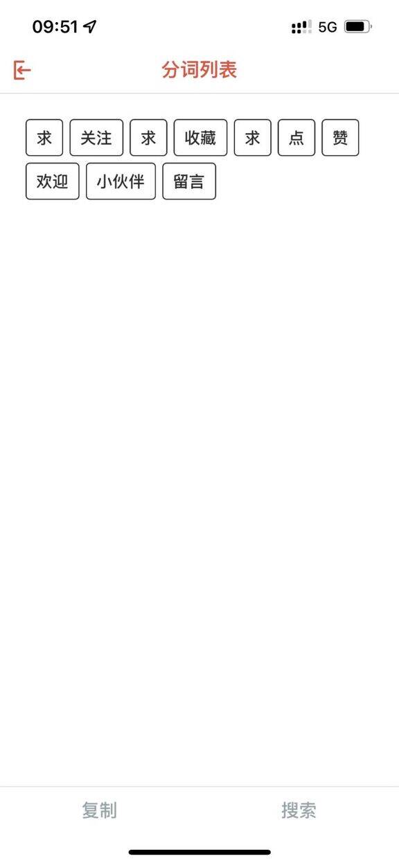用惯了smartisan的大爆炸,换到iphone后最麻烦的就是没有分词功能,尤其iphone支持了图片文字识别后,对于文本的处理显得更加迫切。好在有一款软件,叫pin(我当时免费下载的,现在好像收费了),可以实现分词的功能,再配合快捷指令,可以快速启动pin的分词界面,虽然步骤稍嫌烦琐,但总算有了替代方案。