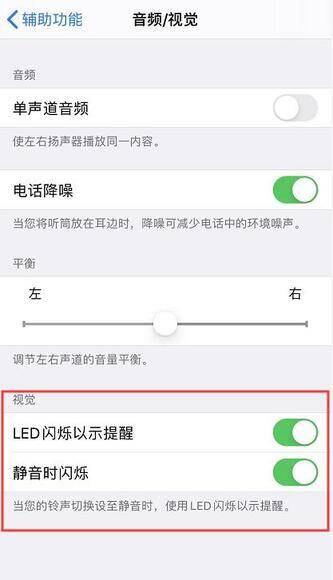 用户可以前往 iPhone “设置”-“辅助功能”-”音频/视觉“中开启“LED 闪烁以示提醒”功能,以避免设备在锁屏且静音时错过重要通知或电话,但需要注意的是,“LED 闪烁以示提醒”仅在您的设备锁定时工作。如果该功能在您使用手机时无效,是正常的设置。