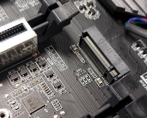 M.2也是一种接口类型。由于SATA速率已经定格在6Gbps,虽然应对机械键盘绰绰有余,但对于固态硬盘来说早已成为瓶颈,因此主流的固态硬盘早已搭上带宽超高的PCI-Express接口的快车,在主板上的表现形态最常见的就是M.2接口,就是下图的这个样子,而且往往配置在显卡插槽附近。