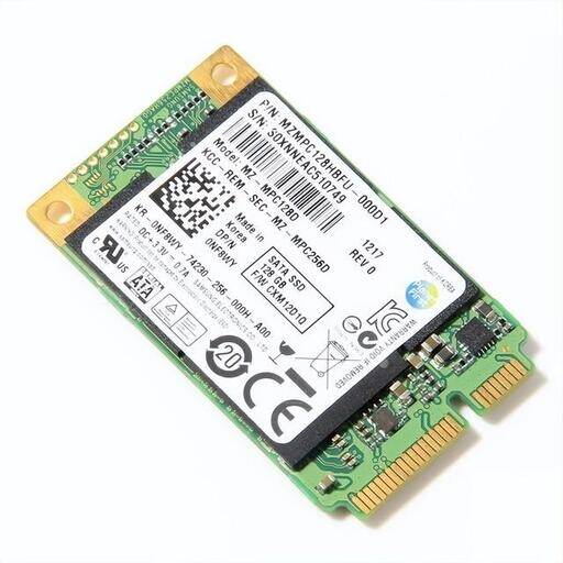 在一些笔记本或者工控电脑上,大家可能还会遇见这样的固态硬盘,长得看起来有点像一块扩展卡(准确来说更像无线网卡),而且身形特别小巧,这种固态硬盘用的是mSATA接口,采用了mini PCI-E接口形态,但是速度和SATA完全相同。