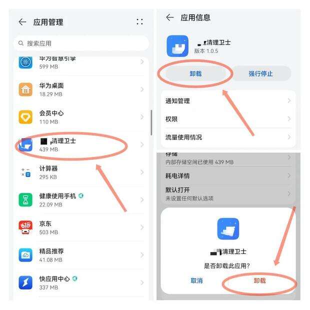 但是有的叔叔 阿姨 爷爷 奶奶到这里仍然发现有垃圾广告弹出,这时候就要继续在“应用管理”查找一找最近突然冒出来的陌生软件把它清理掉就可以解决问题了。(现在的智能手机系统里面一般重要的系统软件都是不能删除的,所以不用担心会造成系统崩溃问题)