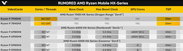 如果不出意外,锐龙9 7945HX、锐龙9 7845HX可能也会和Intel HX55系列一样,直接拿桌面核心,改造成移动平台整合封装,用于游戏本。
