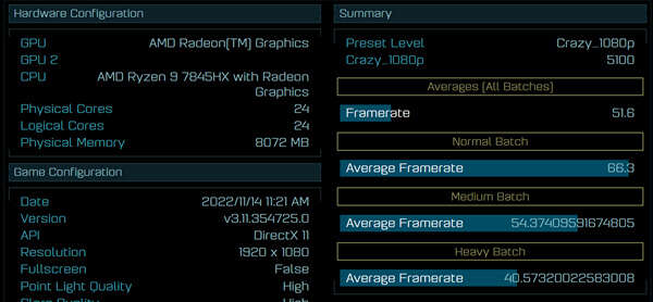 总是泄露新品型号的《奇点灰烬》,现在曝出一款“锐龙9 7845HX”,识别为24核心24线程,但是按照这个游戏的尿性,它必然是12核心24线程——锐龙9 7900X就被它当做24核心24线程。