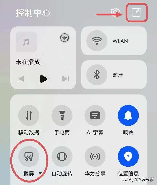 如果说你的控制中心里没有截屏图标,应该是隐藏了,可以点击右上角的写字板图标,然后选择编辑快捷开关,下方就会出来很多隐藏图标,找到截屏图标按住它拖上去,就可以使用了。