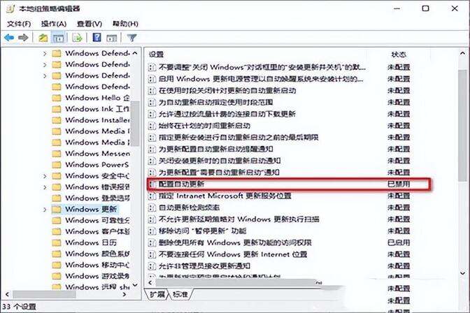 2、在新跳出来的窗口里,按照“计算机配置---管理模板---windows组建---windows更新的顺序”找到“配置自动更新”的功能;