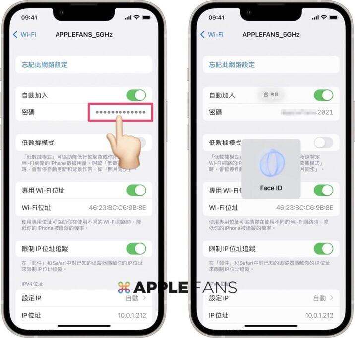 和前面的步骤相同,点击密码栏位,就可以显示或拷贝这个Wi-Fi 网络连线的密码。