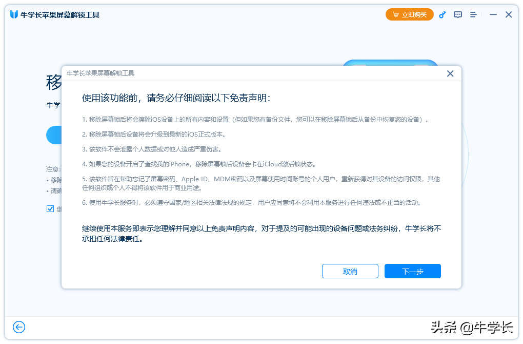 删除iPhone / iPad上的4位/ 6位数字密码,还可以借助一些专业的锁屏移除工具,如牛学长苹果屏幕解锁工具。