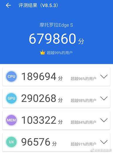 根据联想高管给出的跑分来看,摩托罗拉Edge S的总分有679860分。这个成绩和骁龙865的平均分相比算是很高的,不过其实也有一些手机品牌能把骁龙865跑到类似分数。当然,这些都是基于实验室环境,毕竟这次发布的骁龙870也是官方成绩,直接和其他品牌官方成绩对比问题不大。而安兔兔公布的骁龙865跑分数据则来自用户,所以会低很多。