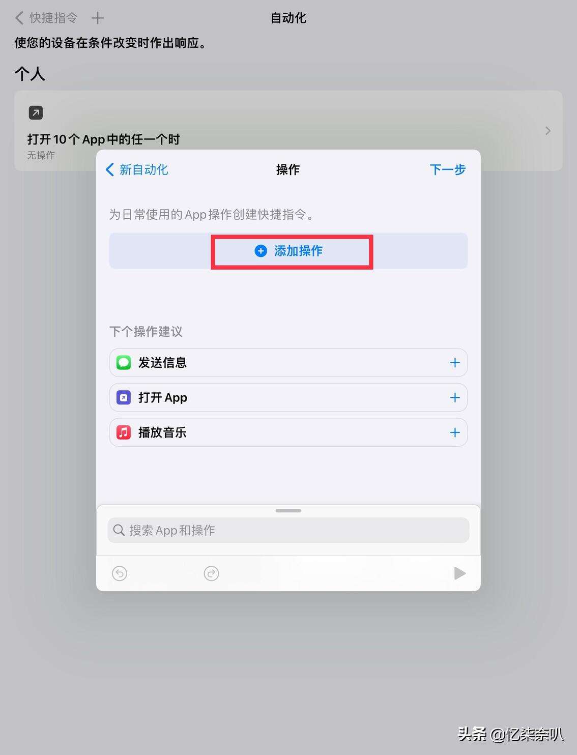 第三步,点开自动化后,就会出现很多选项,下划找到App并点开,在里面选择自己要加密的App,然后就可以进行下一步了