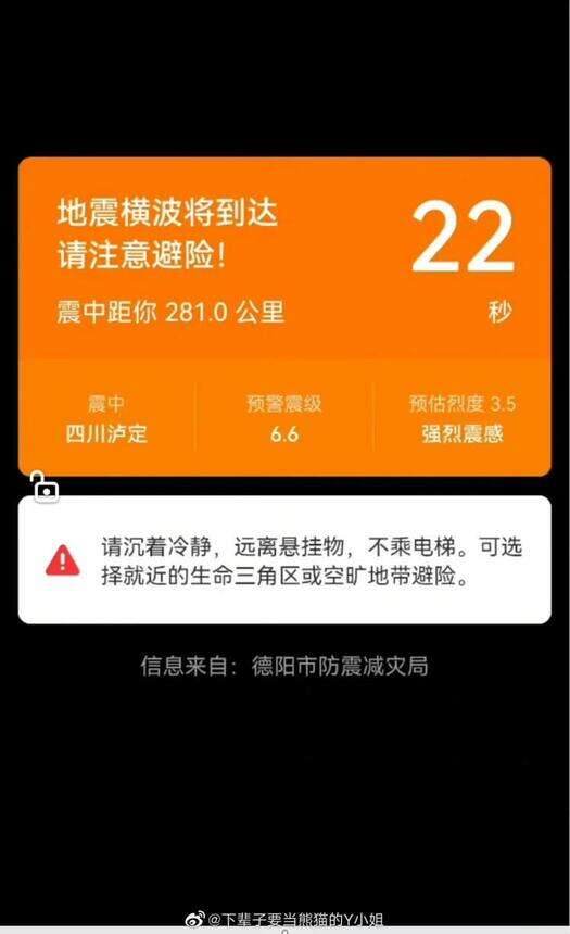 9月5日,四川甘孜州泸定县发生6.8级地震。地震发生前,四川、重庆有居民收到了自己手机中的地震预警。