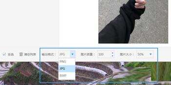 在页面的底部有【输出格式】【图片质量】【图片大小】可以提供选择,文件的输出格式有三种可以选择,如图: