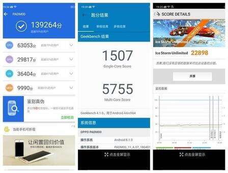我们利用三大跑分软件对OPPO A3进行了跑分,结果如下: