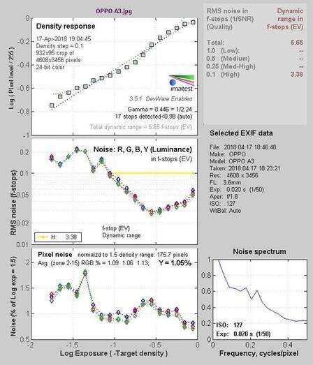 可以看到,OPPO A3解析力表现在1600-2000线之间,色彩还原表现非常出色,偏色较少,白平衡和动态范围表现则中规中矩。