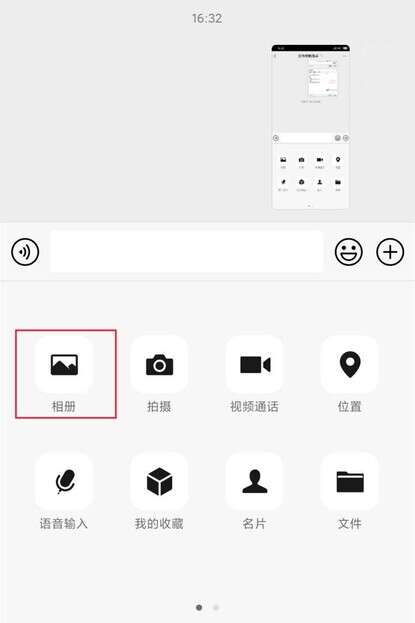 打开微信聊天框,选择【相册】,将需要压缩的图片发送给自己或者文件传输助手即可。