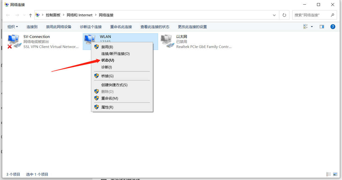2.先借用同事的电脑查看密码。本次以win10系统为例。点击右下角WiFi标志按钮,网络和Internet设置--更改适配器设置--右击无线适配器--状态--安全--显示字符,即可查看WiFi密码。