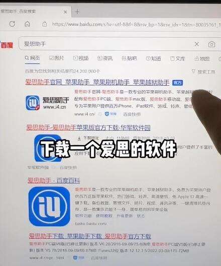 第一步,先在电脑端下载一个【爱思助手】。用百度搜索【爱思助手】,第一条带有【官网】字样的,我们点开下载并安装。