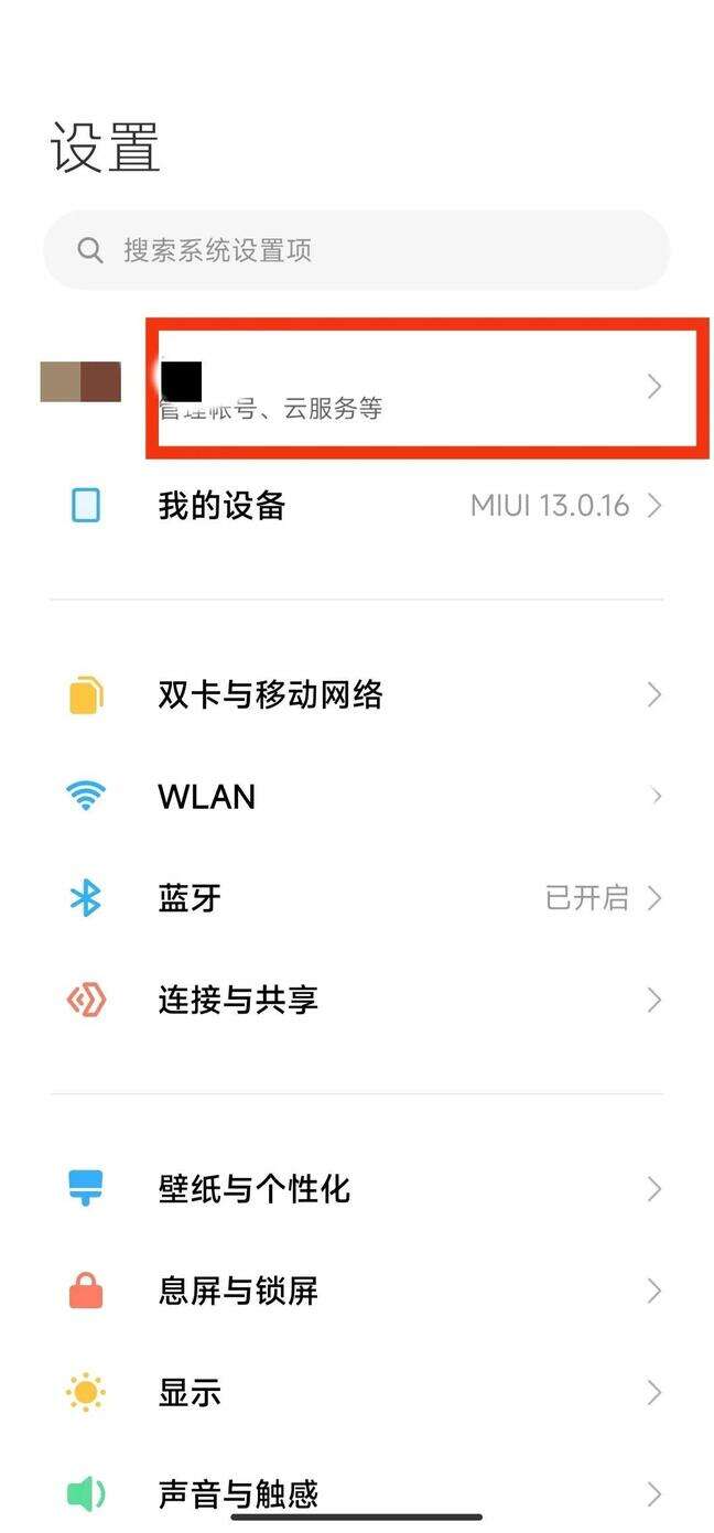 1.打开设置,从设置菜单中点击最上方的个人账号;