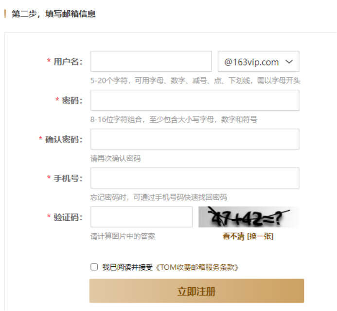 1. 可以通过百度搜索进入https://vip.tom.com网站,点击VIP邮箱注册页面。