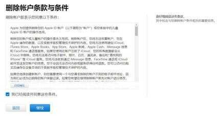 阅读并同意删除帐户条款。