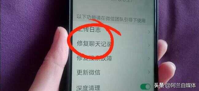 我们把它点一下,立刻下方就出来了“修复聊天记录”,我们把它点开,下方也有提示,使用微信中发生聊天记录显示异常丢失等问题,可以尝试修复。我们点下方的“修复聊天记录”,这样系统就自动修复显示异常丢失的聊天记录啦!
