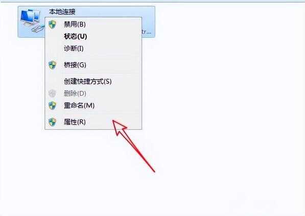 2、右击 本地连接(有的系统可能展示的名称为 以太网) 网络图标,点击【属性】