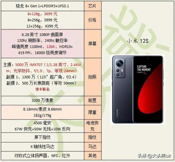 - 三是拍照素质其实不错。小米12S升级为索尼IMX707,Pro版本同款素质还不错,进光量提升,加上这次还有莱卡联名,整体软件成像体验是值得期待的。