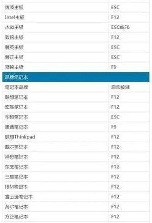 这里是品牌机大多数快速启动快捷键