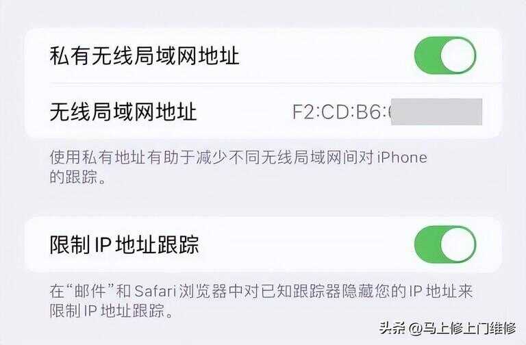 只要在WiFi网络中,尝试关闭「私有无线局域网地址」和 「限制 IP 地址跟踪」功能,网速就会好不少,但可能会舍弃部分隐私性。