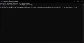 5、粘贴以下命令并按下Enter以运行它:reg delete HKCUSOFTWAREMicrosoftWindowsCurrentVersionIrisService /f && shutdown -r -t 0