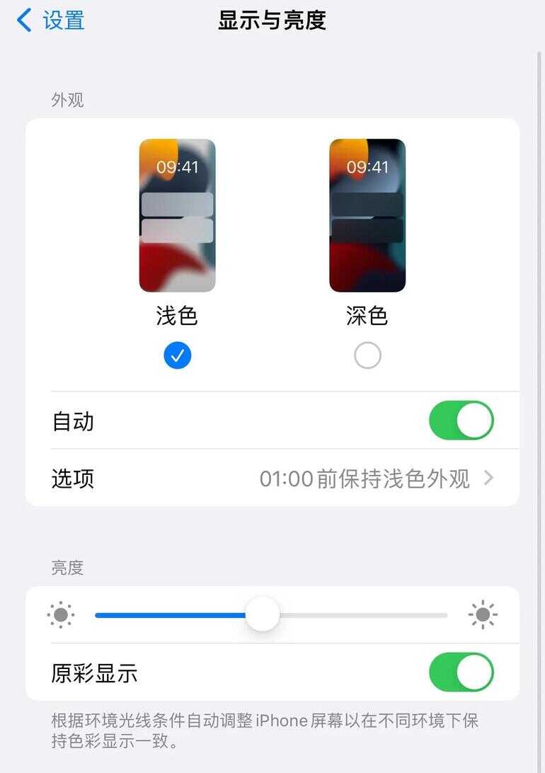 我们建议大家可以在显示与亮度中打开自动,让手机的屏幕能够自动的进行亮度的调节。并且在夜晚时分,我们建议打开深色模式,这对于手机的续航实际上是颇有帮助的。