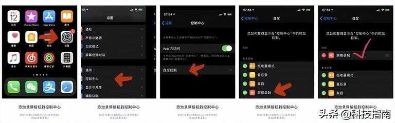 设置-控制中心-自定控制-点击“+”号添加屏幕录制。目的是把屏幕录制加入上滑菜单中的控制中心里。这个“滚动截屏”是利用屏幕录制功能来实现最终的滚动截屏。