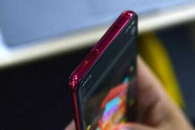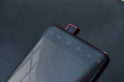 Redmi K20 Pro的前置摄像头模组位于顶部左侧,容纳了一枚2000万像素摄像头,通过步进马达驱动,需要时可以在0.8秒内升起。有趣的是,这颗模组的两侧各增加了一条透明光带,可以伴随着升起泛出红色光效,使得摄像头模组的升降过程有了更多仪式感。