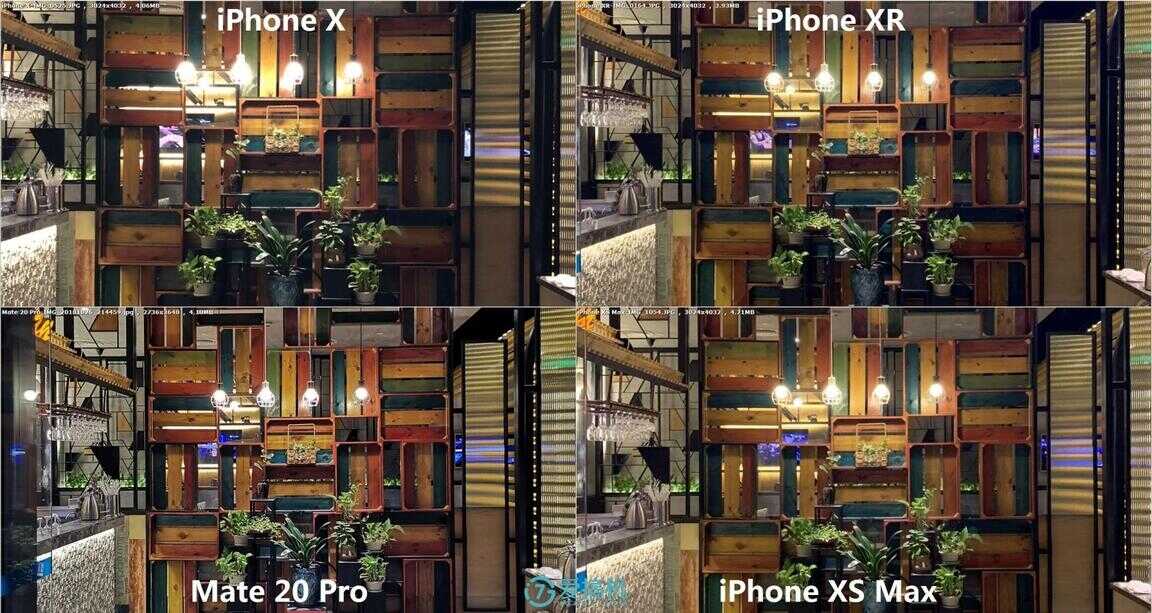 iPhone XR:苹果给了XR和XS Max不同的测光偏向。虽然ISO一样的场景,它们的表现无比接近。但在灯光和弱光场景,XR的测光会有大几率比XS Max更低。更低的ISO,让XR的高光压制、噪点和辨析力都比XS Max稍好(差距很小就是了)。以前双摄iPhone会用副摄参与测光(取景时挡住副摄,会导致测光变动),但XS Max已经没有这种现象了。所以还无法确认这个测光差异,是因为副摄缺失,还是因为算法差异所致。