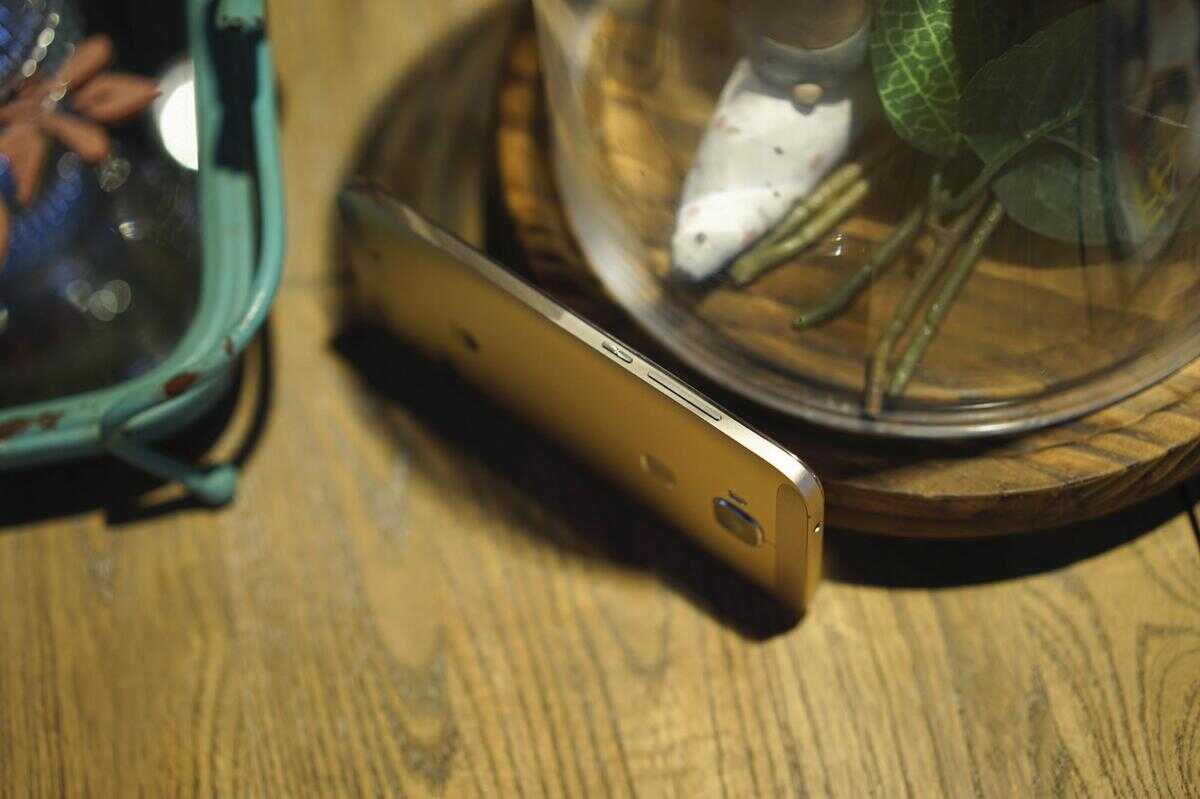 华为麦芒4 背面设计也很靓丽时尚,采用了全金属一体机身,金属比例竟然达到了高达90%,中框与背盖连为一体,再加上陶瓷喷砂工艺结合下,背部手感相当细腻,表面的颗粒感有效增强与手心的摩擦力,而且更温和,解决了金属材质容易滑落的诟病。这次繁繁评测的华为麦芒4 全网通版是最新的晨曦金色,这种金色要比苹果的淡金色要更为浓重,当然也不是LOW的“土豪金”,应该是中国人比较偏爱的的配色吧,奢华中不失内敛,在阳光下华为麦芒4还会会反射出闪耀的亮银色,金属感浓郁。