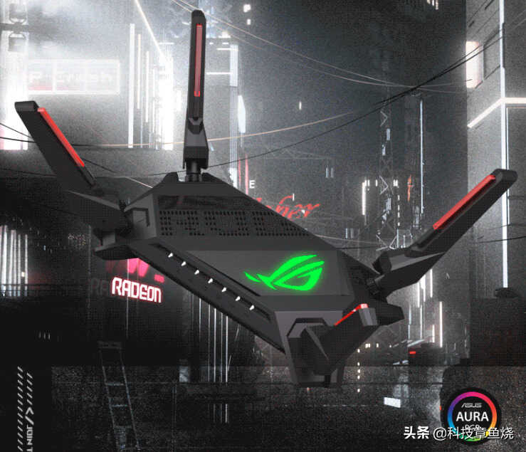 如果你预算比较充足,需要一台性能极为出色的高端电竞路由器来保障自己的游戏体验的话,全新推出的ROG GT-AX6000准没错。像素风ROG LOGO搭配神光同步“败家之眼”,信仰充值到位。棱角分明的造型,使用红色长条点缀的天线,仿佛一艘宇宙战舰。