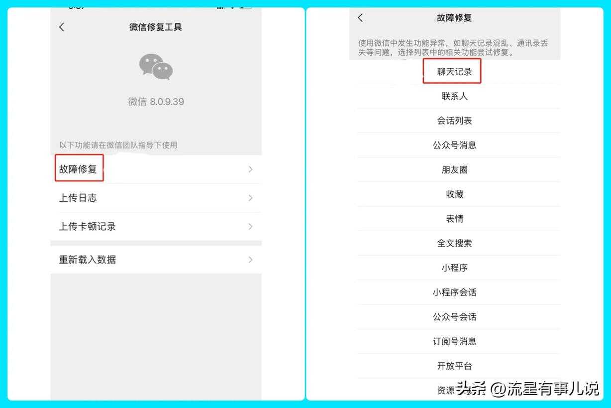 3,选择第一个选项“聊天记录”,等待自动修复完成即可。
