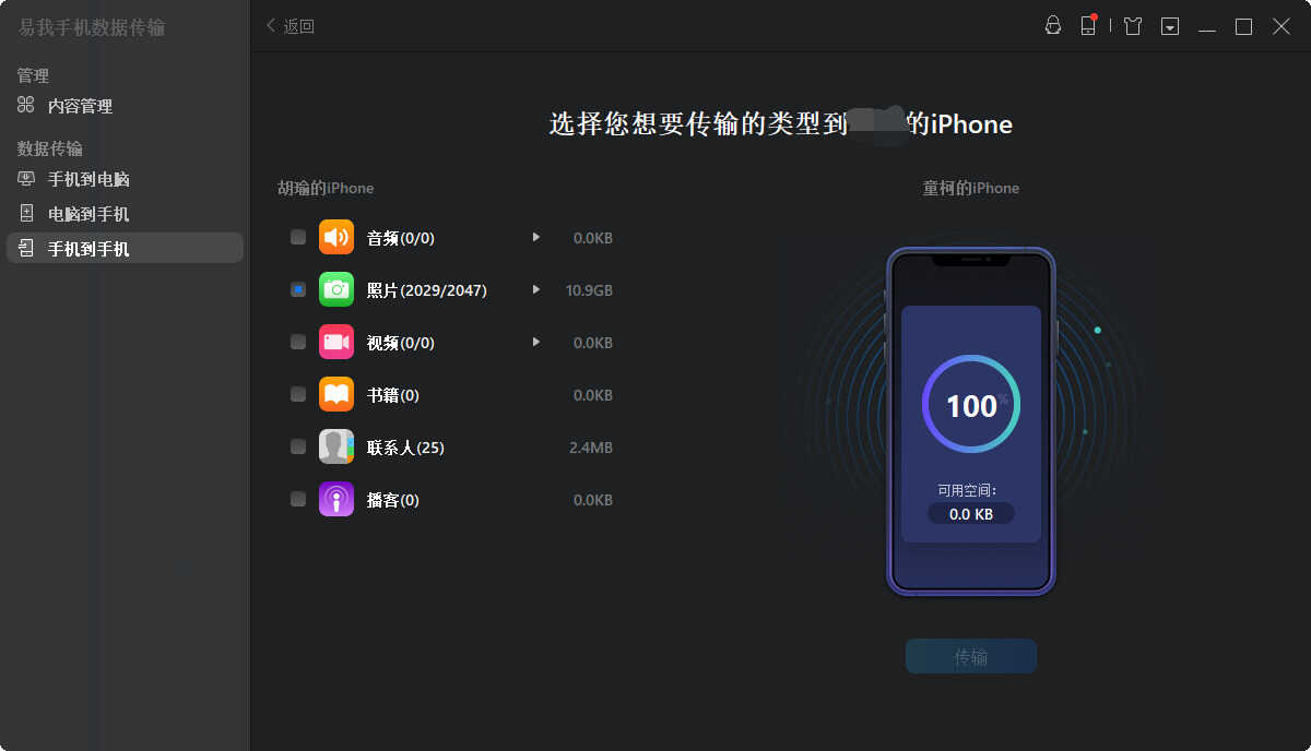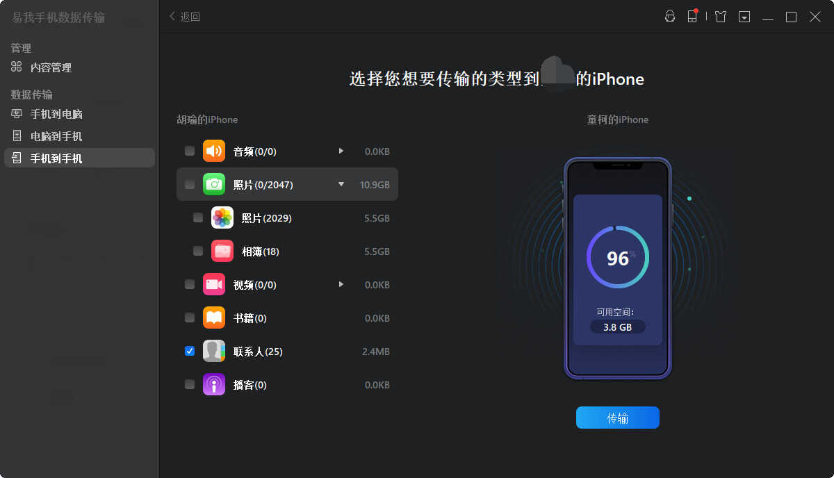 使用易我手机数据传输,将iphone数据迁移到新iphone上的操作步骤如下: