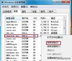 1、Ctrl+Alt+Delete快捷键开启任务管理器,找到进程选项卡下边的explorer.exe进程,鼠标右键选择结束进程。