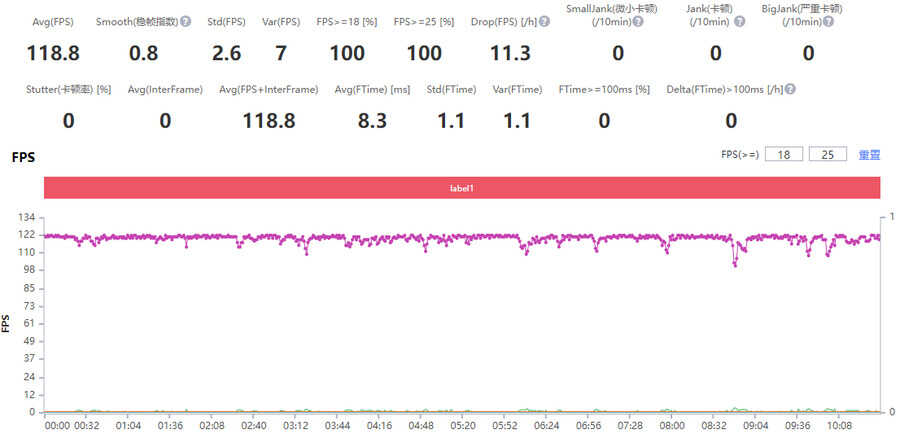 《王者荣耀》游戏支持极高帧率,我们在超高分辨率与极 致画面总质量的图像设置中玩了一局游戏,PerfDog软件记录到的平均帧数为118.8帧,游戏流畅度很好。二期vivo X90支持4D游戏振感,开启后适配的英雄释放技能会有振动效果,大体积X轴线性马达提供清脆细腻的振动反馈,让我们在玩游戏的时候更有沉浸感。