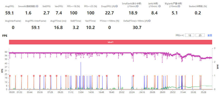 对于手机的性能比较高的《原神》游戏中, vivo X90在半小时的《原神》测试中PerfDog软件记录到的平均帧数为59.1帧,拿到近满帧的帧率表现,游戏过程中物流是刷怪还是来回跑图,整体的游戏过程都十分的流畅顺滑,几乎没有遇到过卡顿或者掉帧的情况出现。
