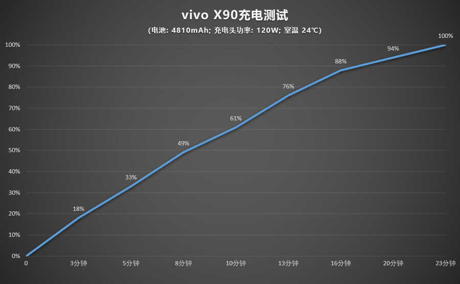只需20多分钟手机即可将电量充满100%,并且充至50%电量也差不多仅需8分钟时间,这也与官方宣传的所相符。但基本上大家应该都不会在手机完全没电的情况下才会充电,所以日常使用中无需等待太长时间,就可以保持满电状态出门。