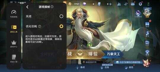 值得一提的是,双芯BOOST电竞功能的支持下,通过侧边栏还能开启“游戏插帧”功能,此时游戏帧数可从60帧提升至120帧,提供双倍的运动估计和运动补偿。比如我们在玩《王者荣耀》时如果没有游戏插帧,那么则需要在120帧极高帧率下才能享受到最流畅的游戏体验,但同时这也就意味着手机一直会处于高功耗的状态,电量与散热都会有很大影响。而在开启游戏插帧后,则只需要将游戏画面设置为超高帧率,此时同样能享受到120帧极高帧率带来的畅快与顺滑,同时大大降低了手机的整体功耗。
