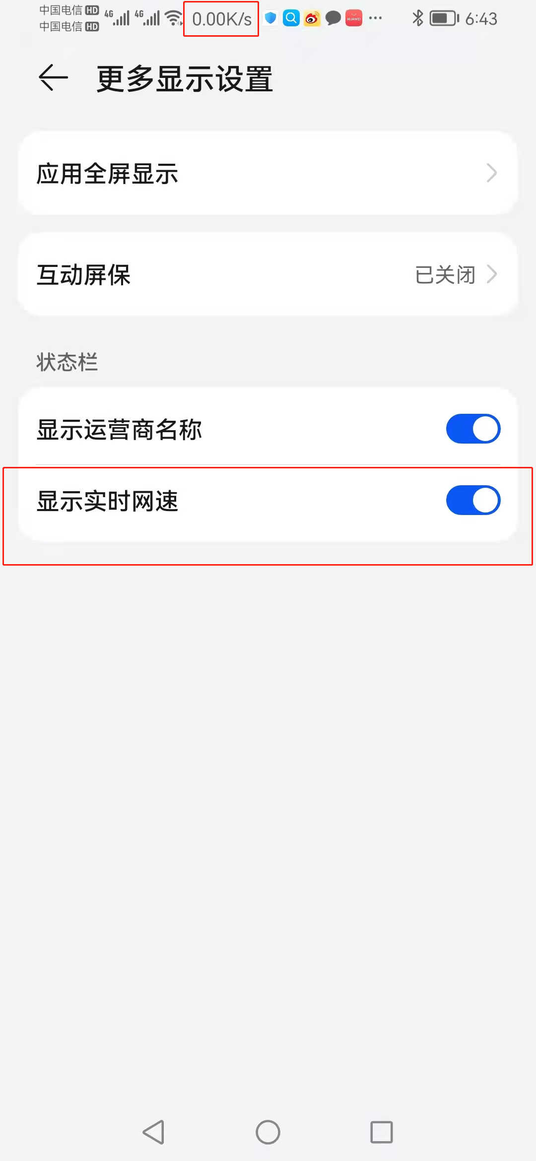 如果身边没有电脑,那用手机也可以测速的,下载测速软件【speed test】或者在手机系统里,【设置】,点击【显示和亮度】-【更多显示设置】,把【显示实时网速】打开即可。