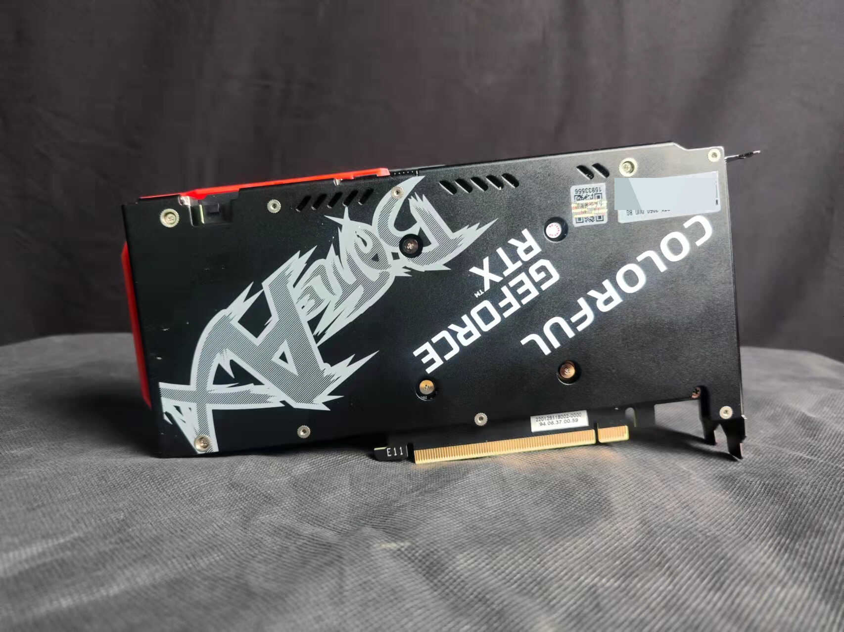 翻到背面,可以看到这张显卡背面采用简易喷漆的一体化金属背板,可以辅助散热并加固PCB板。